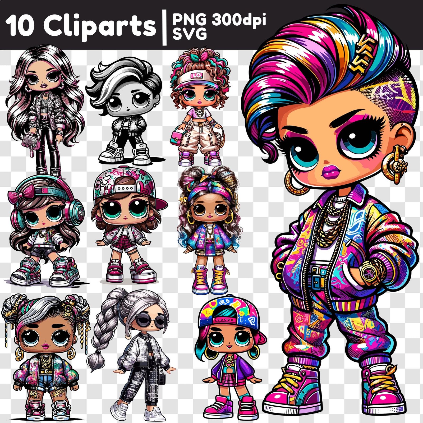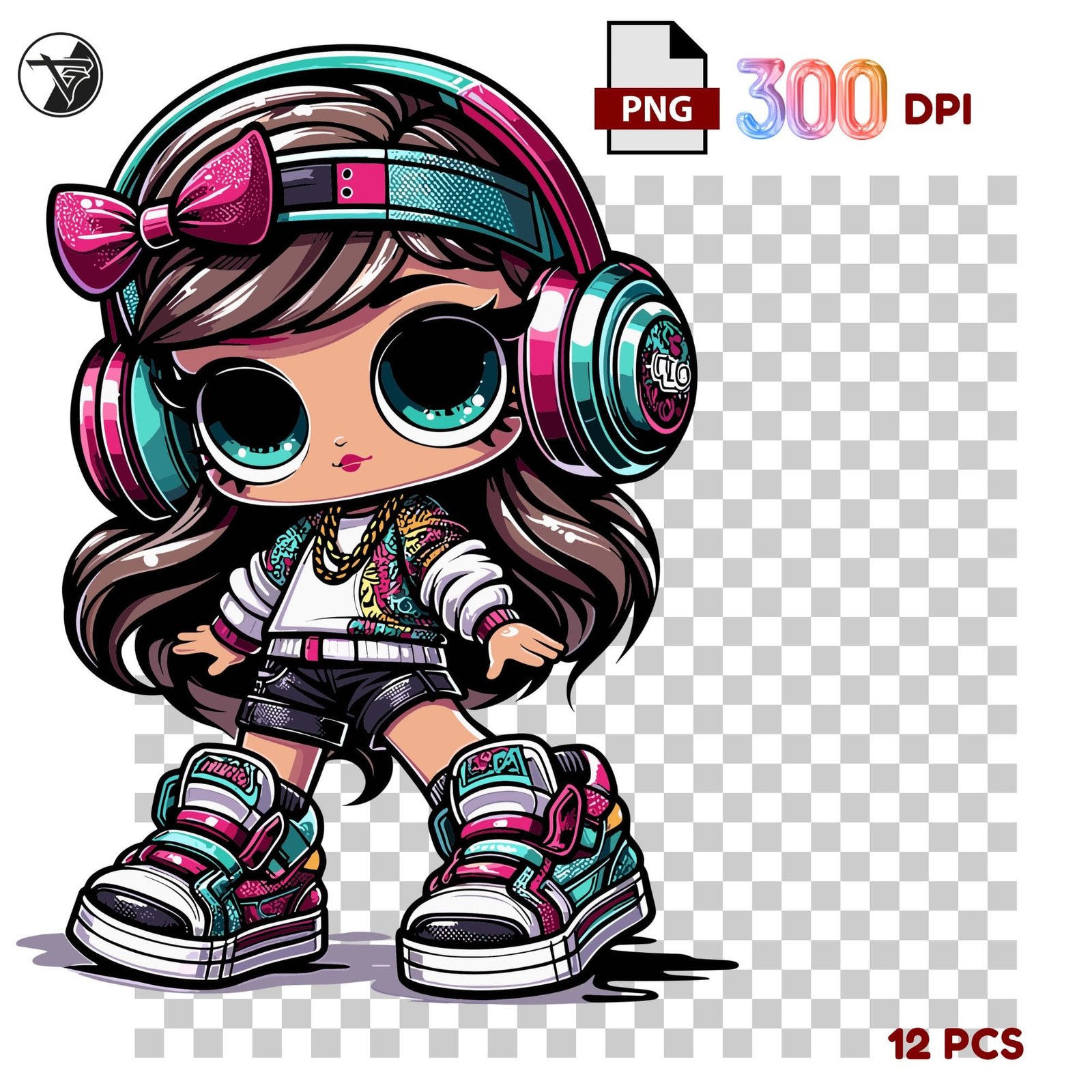To zestaw 12 grafik clipart z postaciami dziewczyn w miejskim stylu. Każda grafika oddaje klimat streetwearu i kultury młodzieżowej, idealnie nadając się do projektów o modowym i ulicznym charakterze.