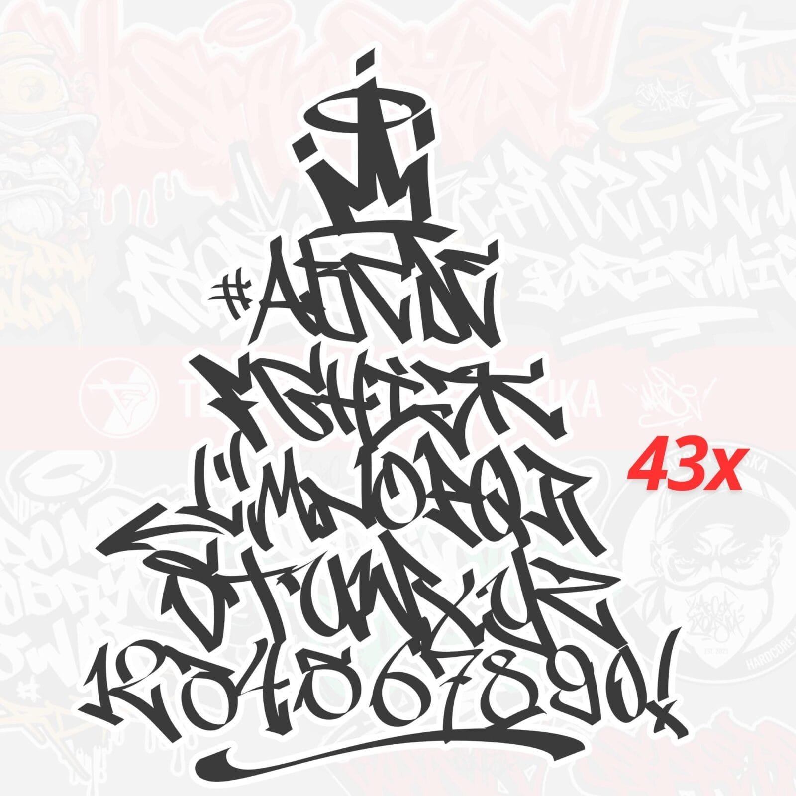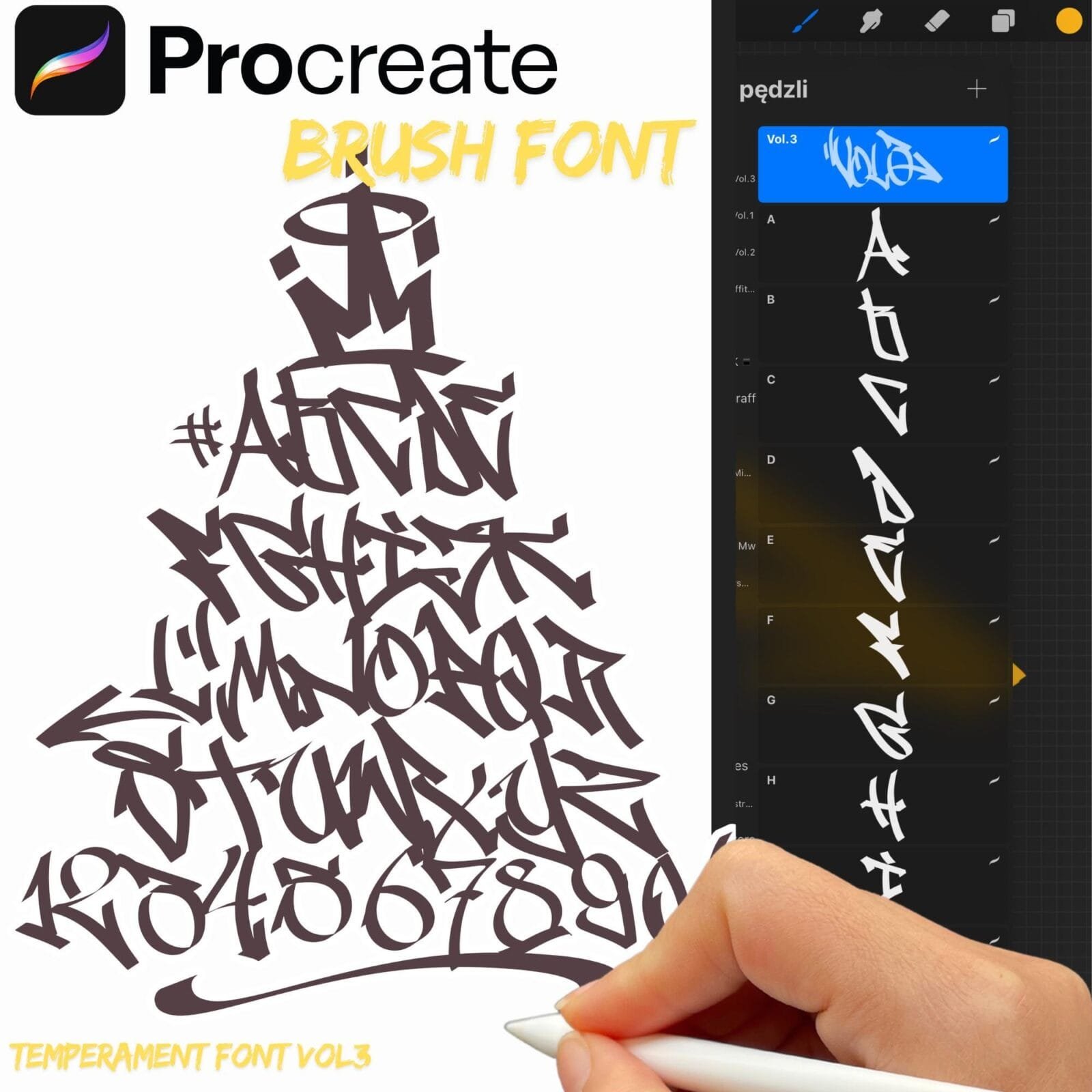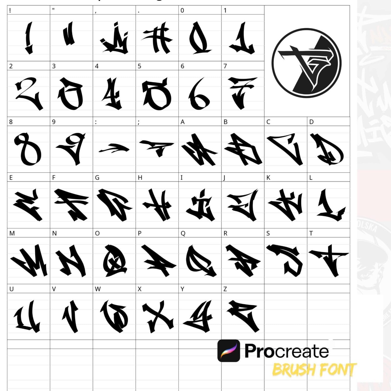 To zestaw 43 cyfrowych stempli (pędzli) do aplikacji Procreate. Każdy pędzel to gotowa litera, cyfra lub symbol w stylu graffiti, co pozwala na szybkie tworzenie napisów i kompozycji bezpośrednio na iPadzie.